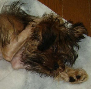 人間に育てられたんだから当たり前 でも、やっぱり犬なんだから、犬と接することも大事です。 子犬らしく、ほかの子たちに絡んでいっては怒られて・・・ でも、くーちゃんにしてみればそれも遊び。 度がすぎたら怒られる。そーゆーことも知っておかないとね。 心配された疥癬は大丈夫かな? 一週間前も発見はされなかったけど、疥癬は鏡検では 出ないことも多いらしいので。 代わりに?アカラスくんがおりましたが(-。-;) 一週間くーちゃんを見てきましたが、ひどく掻くことはないので 疥癬の心配はないでしょう。 アカラスくんがおりますので、現在、イベルメクチン服用中。 アカラスが原因とおもわれる膿皮症もあり、抗生剤も服用中。 今日、見ていただきましたが、アカラスは威力無くしてる模様。 でも、ヤツ(アカラス)は油断ならない卑怯なヤツ! アカラスよ。私を甘くみるなよ~ん! 威力無くしてるフリじゃろ?お見通しやでぇ! 初日は |